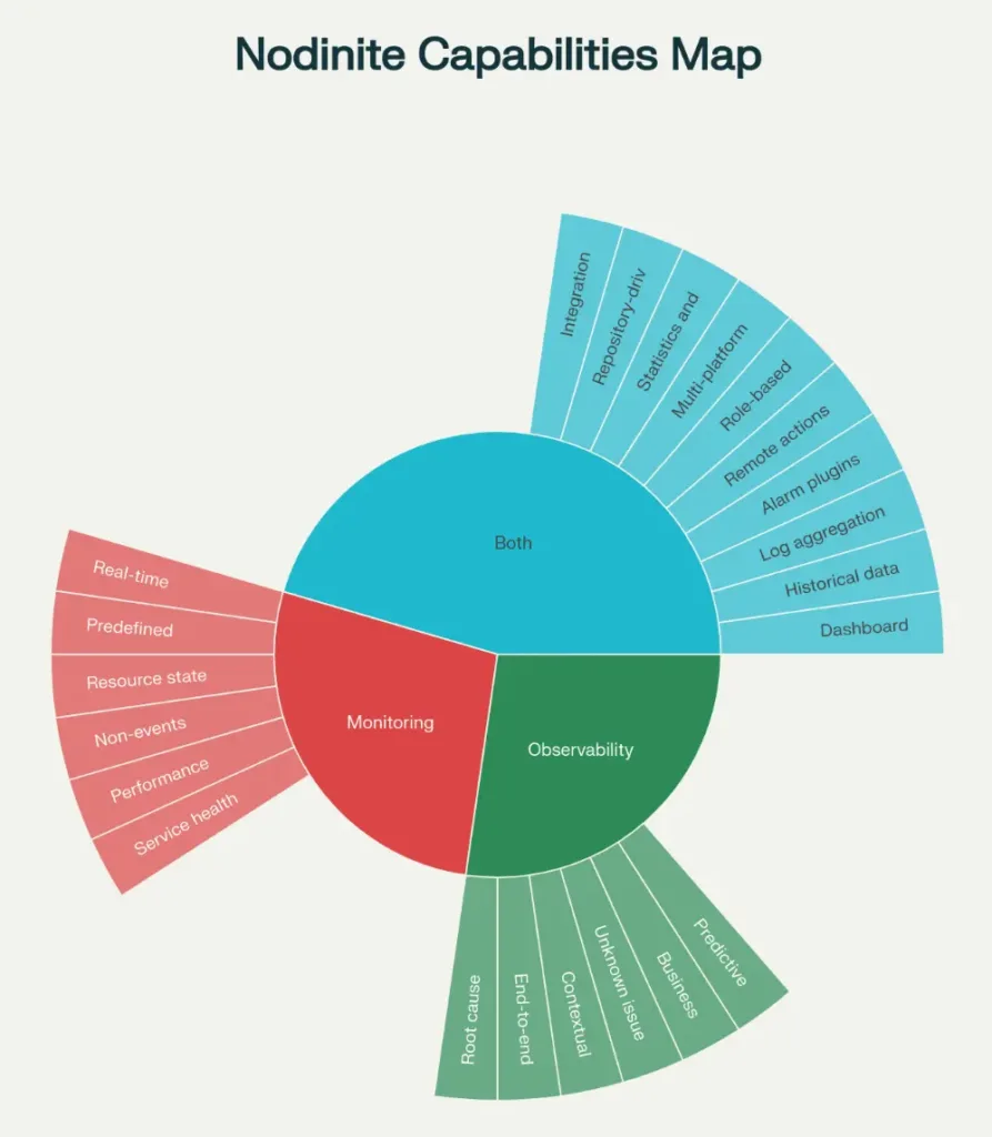 Nodinite’s capabilities positioned across monitoring and observability domains.