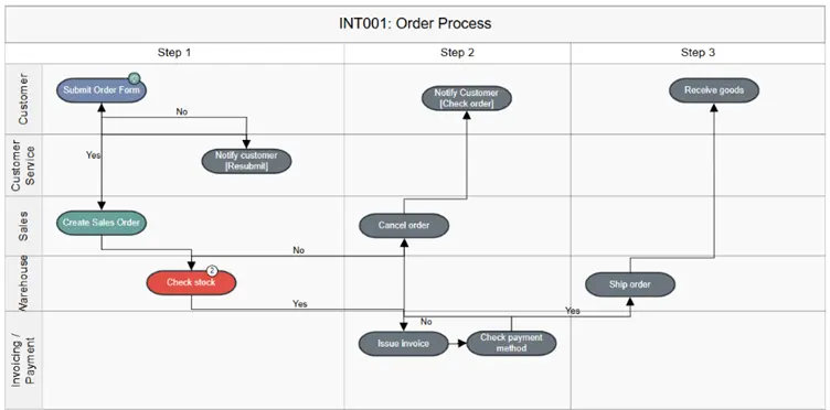 One of the greatest advantages of using BPM for process visualization is that it instantly highlights exactly where a breakdown occurs. In this scenario, the issue happened within the Warehouse department, meaning that they can immediately identify, investigate, and resolve the problem.